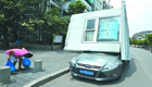 塑钢亭被大风掀翻 轿车“一秒变房车”