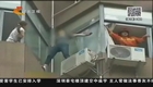 消防员夺窗飞扑救下跳楼女子瞬间
