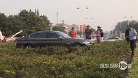 误将油门当刹车 豪车爬上安全环岛