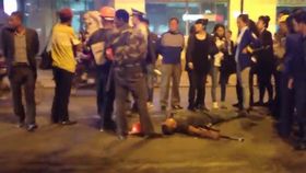视频画面显示,8月26日晚上8点09分34秒,市区东针路上,一位中年男子牵着一个小姑娘准备过马路。