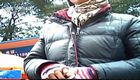 男子发现鸭子被冻湖面 跳湖破冰救援