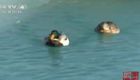 男子发现鸭子被冻湖面 跳湖破冰救援