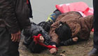 男子发现鸭子被冻湖面 跳湖破冰救援