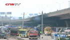 南昌一大桥下突发大火 20余辆旧公交车烧毁