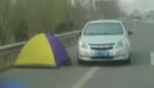 司机高速上搭起帐篷睡觉
