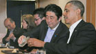 实拍奥巴马与安倍吃寿司