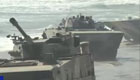 实拍水陆两栖战车雨中海上射击命中标靶