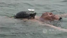 实拍武汉一男子与宠物龟同游汉江