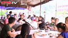 游客围观洪峰 商户:生意好