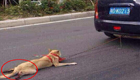 汕头街头惊现虐狗 一辆汽车拖着小狗行驶