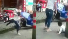 女子当街疯狂虐待亲生女