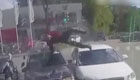 小伙骑摩托连撞两车