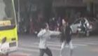 两男子街头搞笑打架