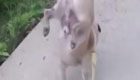 小狗有怪癖 倒立排泄边走边尿