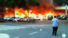 实拍9辆汽车遭“火烧连营”