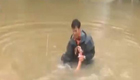 小伙洪水中破车顶惊险救人