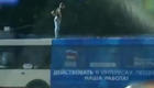 醉汉爬上公交车顶闹事