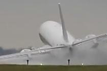 客机降落瞬间被大风吹歪