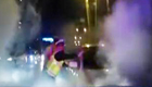 两男子马路上开碰碰车