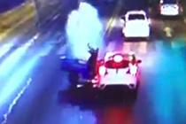 女子车流中连闯2次红灯 交警奋不顾身扑救