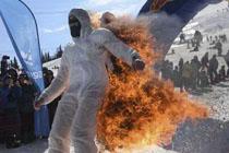 男子点燃滑雪服致烧伤