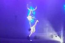 女子表演空中飞人突然坠地 幸运大难不死