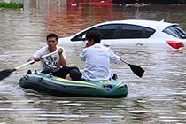 暴雨后民众划船“突围”