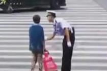 老人闯红灯过马路 交警弯腰90度耐心劝说