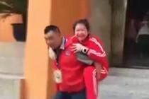 6旬门卫背受伤学生上学