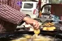 大妈滚油中徒手捞炸糖糕