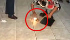 实拍女子街头倒煤球引发窨井爆燃被炸飞