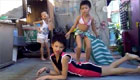 外国美女玩转呼啦圈 狂转数十根腰力惊人