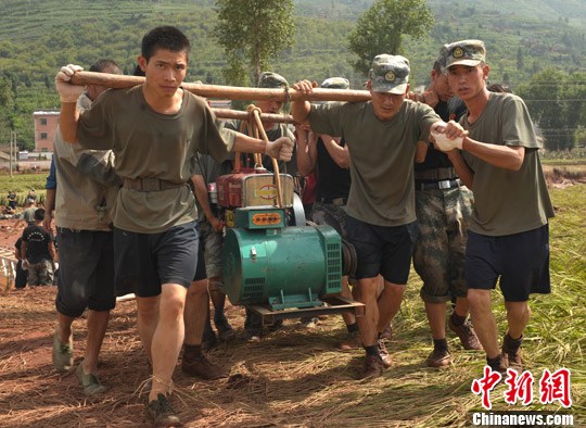 9月4日,成都军区驻滇某师小分队官兵深入四川喜德县洪灾区田间地头、抢修工地帮助灾民抢收被淹的玉米,参与灾区恢复受损电力设施等工作,帮助灾区恢复生产,重建家园。