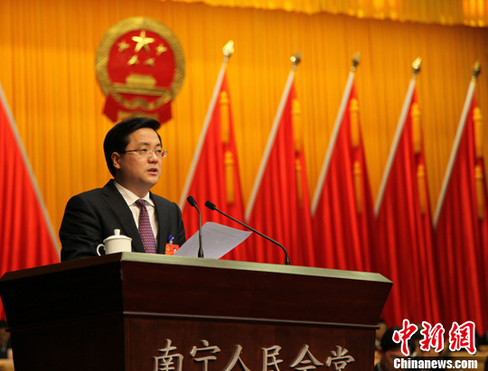 2月20日,广西壮族自治区南宁市第十三届人民代表大会第四次会议开幕,南宁市市长周红波作政府工作报告。中新社发 杨志雄 摄