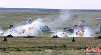 中俄联合反恐军事演习进行实兵实弹协同训练