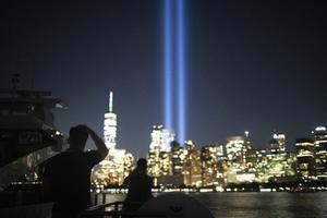 双子塔光柱点亮纽约夜空
