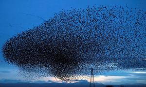 英国椋鸟空中聚集密密麻麻