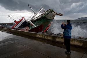 伊斯坦布尔浪涛翻涌船只撞岸