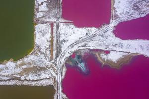 航拍雪后七彩盐湖